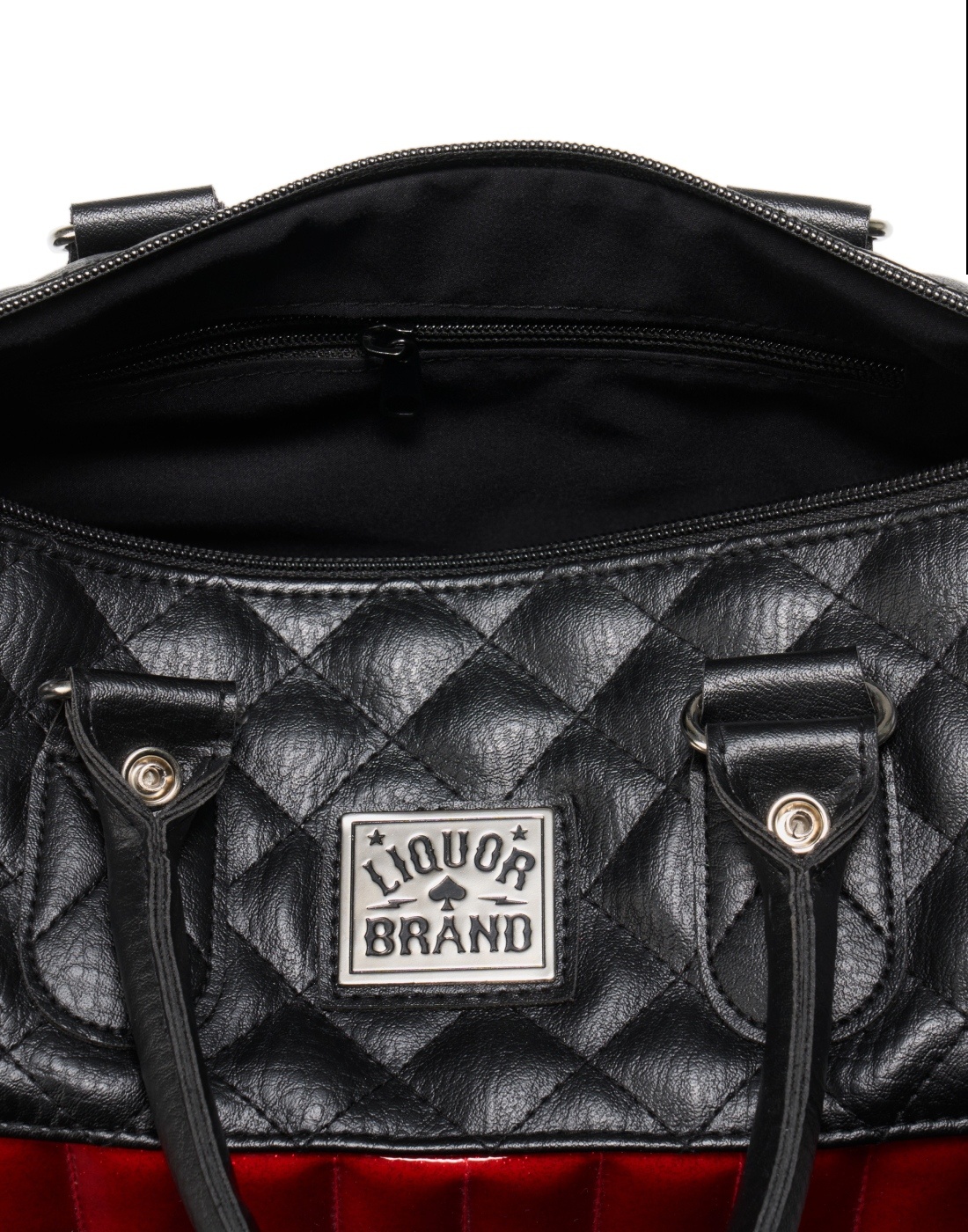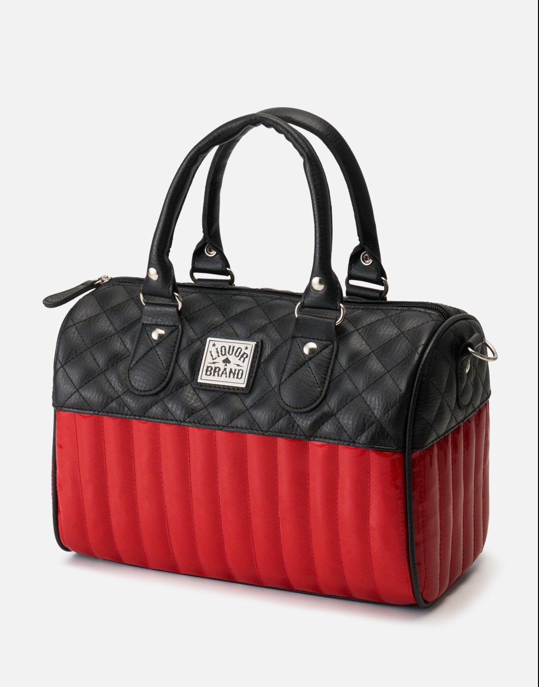 Liquorbrand's Cruiser bags are the perfect size! Featuring quilted vegan leather base, adjustable shoulder strap and handles, foam padded satin like sides with Liquorbrands leopard print, embossed zipper pullers, metal feet and metal embossed logo plate she's the perfect everyday bag!