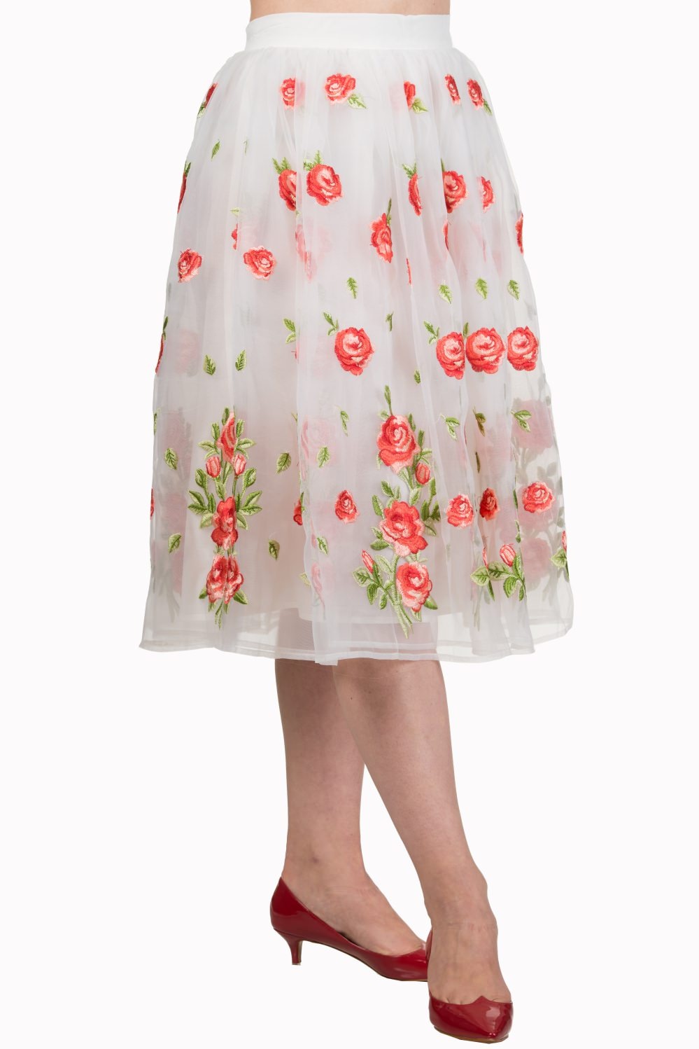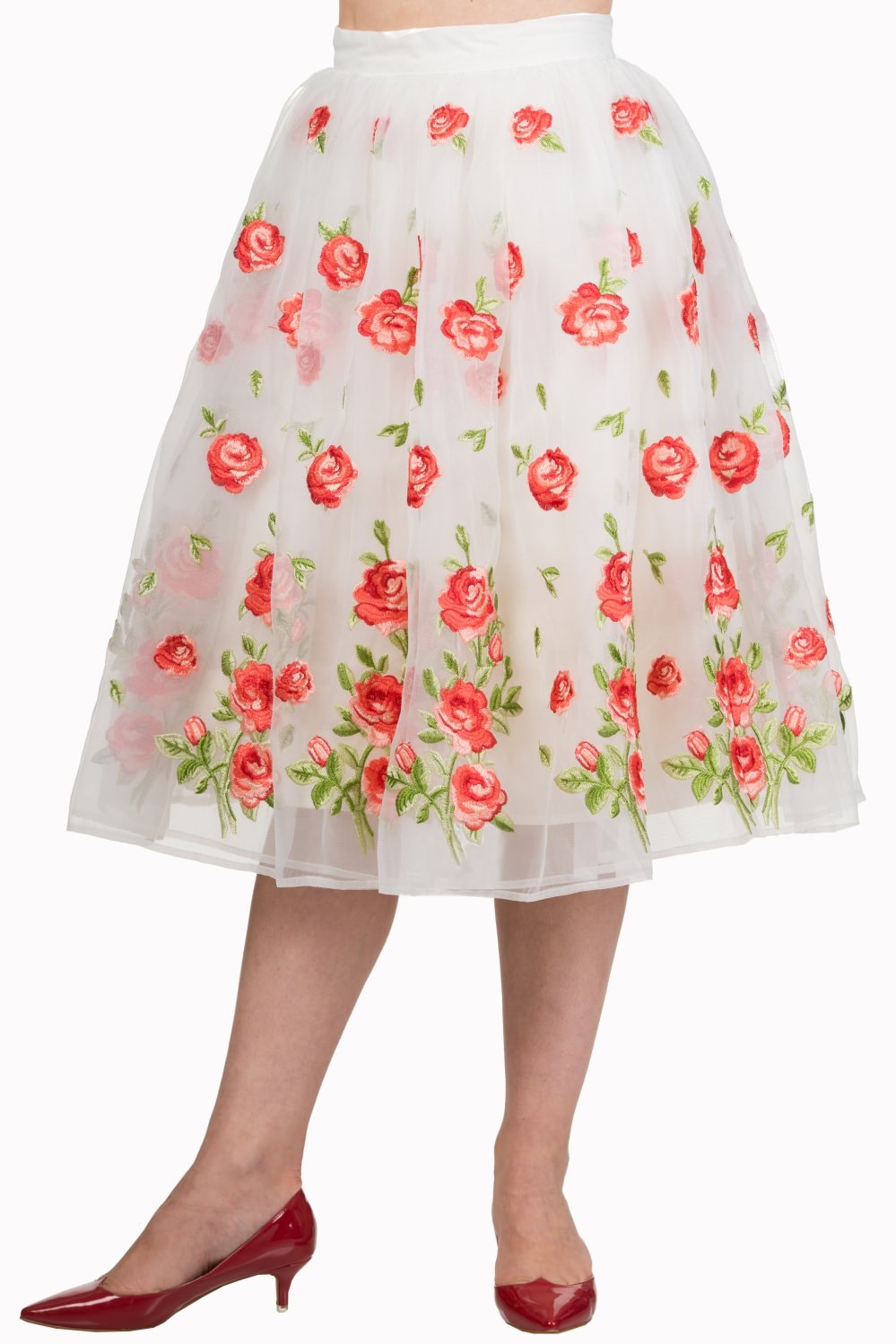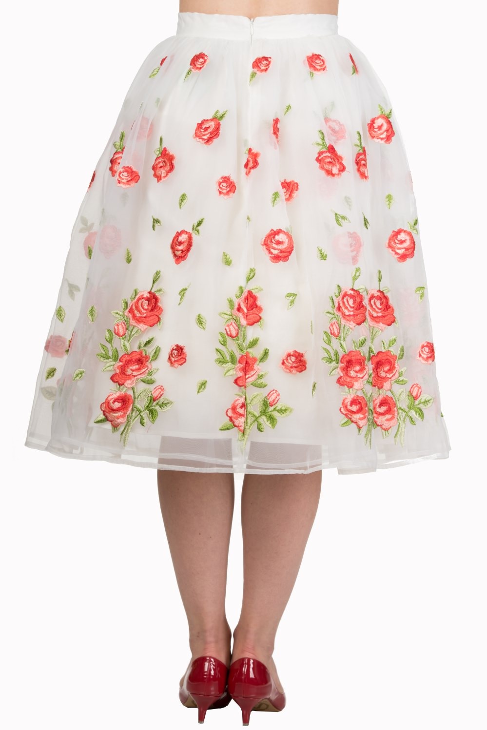 This gorgeous skirt is perfect for days when you're heading out on the town, straight from the office and works equally well for a day out shopping or lunching with the girls. The double layers of tule are fully lined to ensure your modesty and each rose is beautifully embroidered in tones of pink