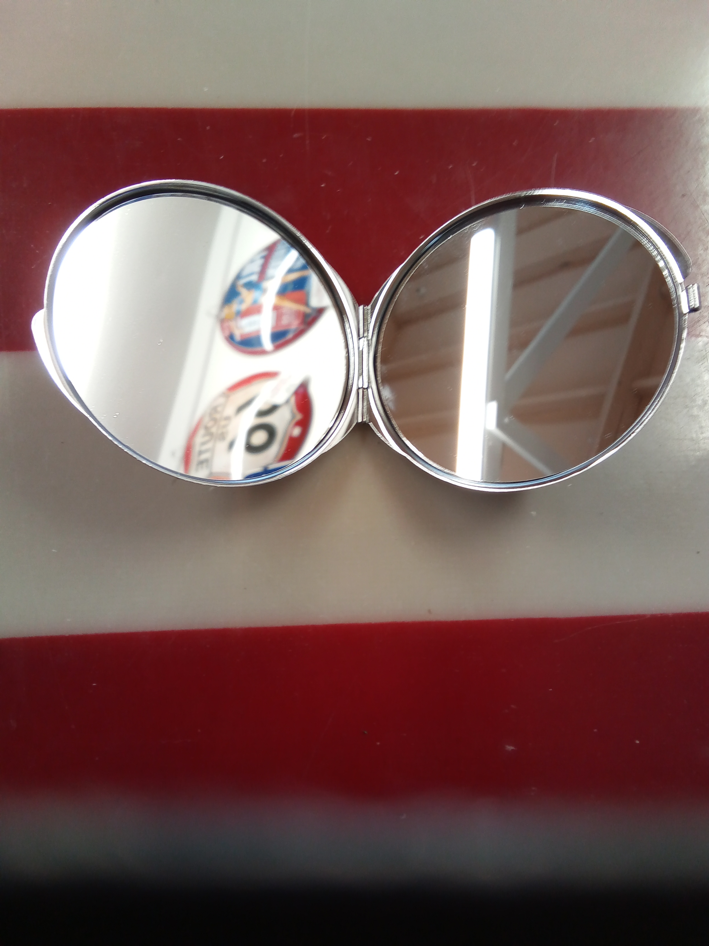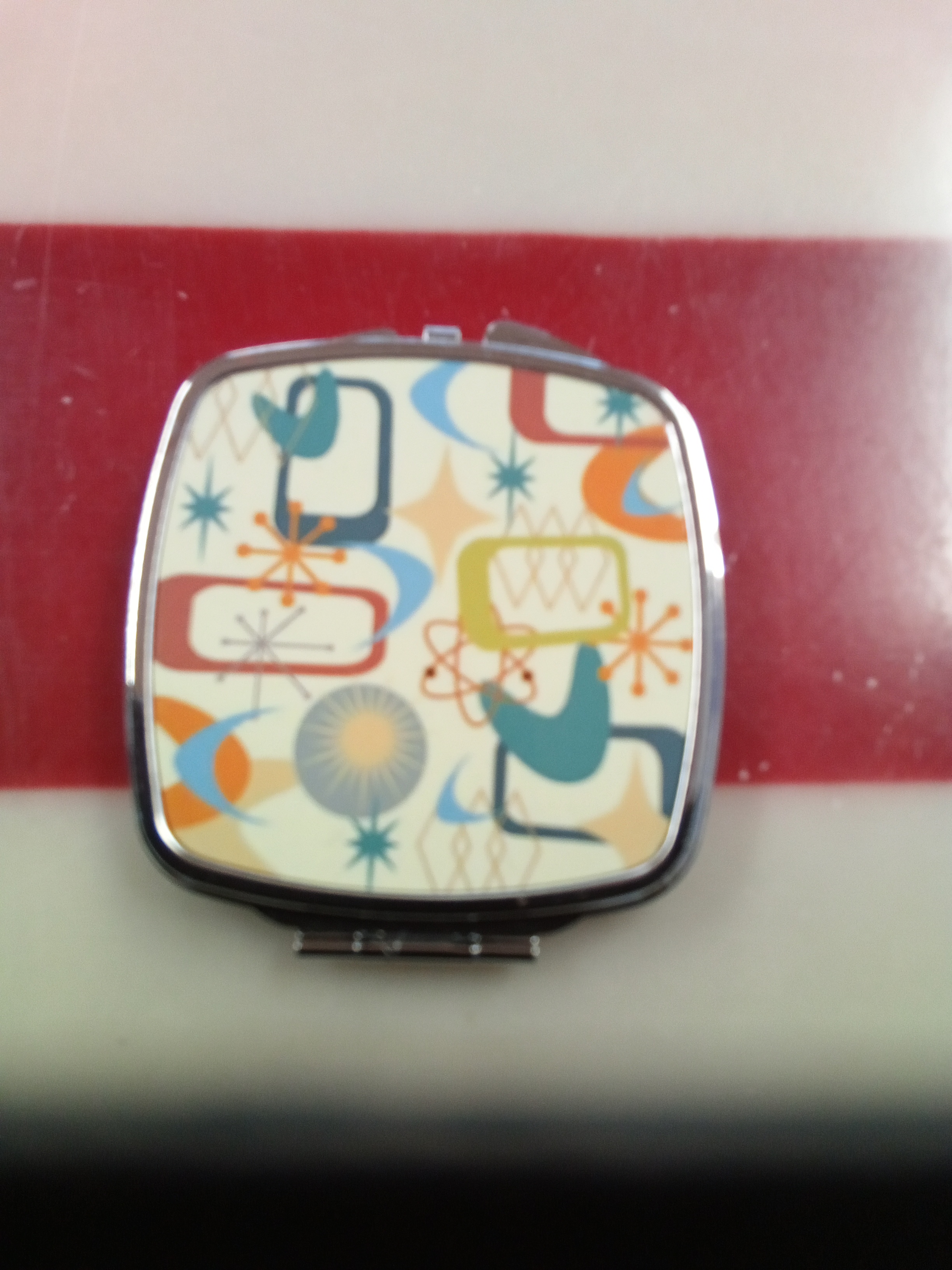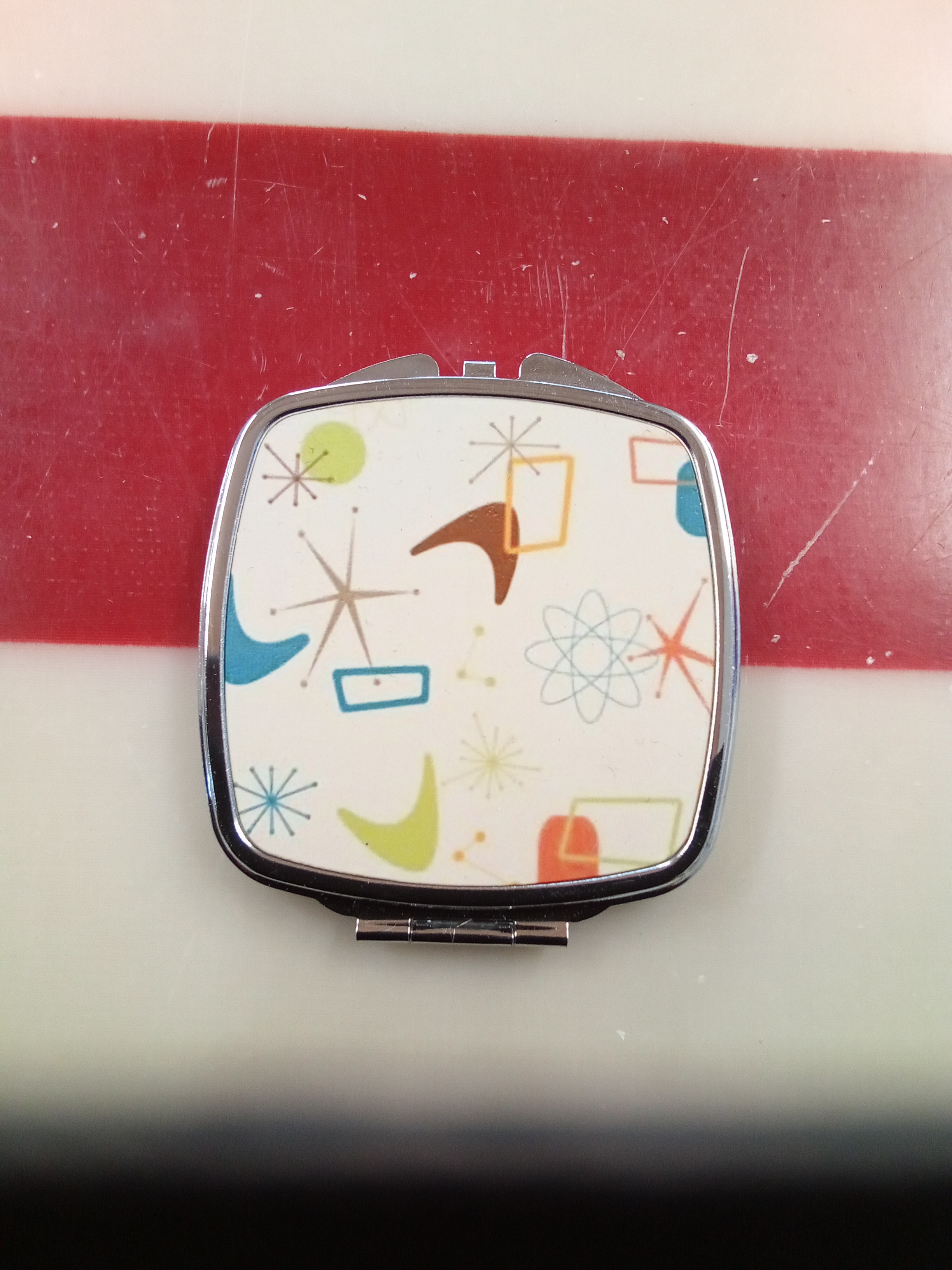 Gorgeous assorted compact mirrors designed to reflect your style, likes and loyalty to your favourite Retro stores! Many different options for the discerning girl with standard and magnifying mirror in one compact. Choose your favourite! Collect the set! Snap closure and either square or round shape. Chrome finish