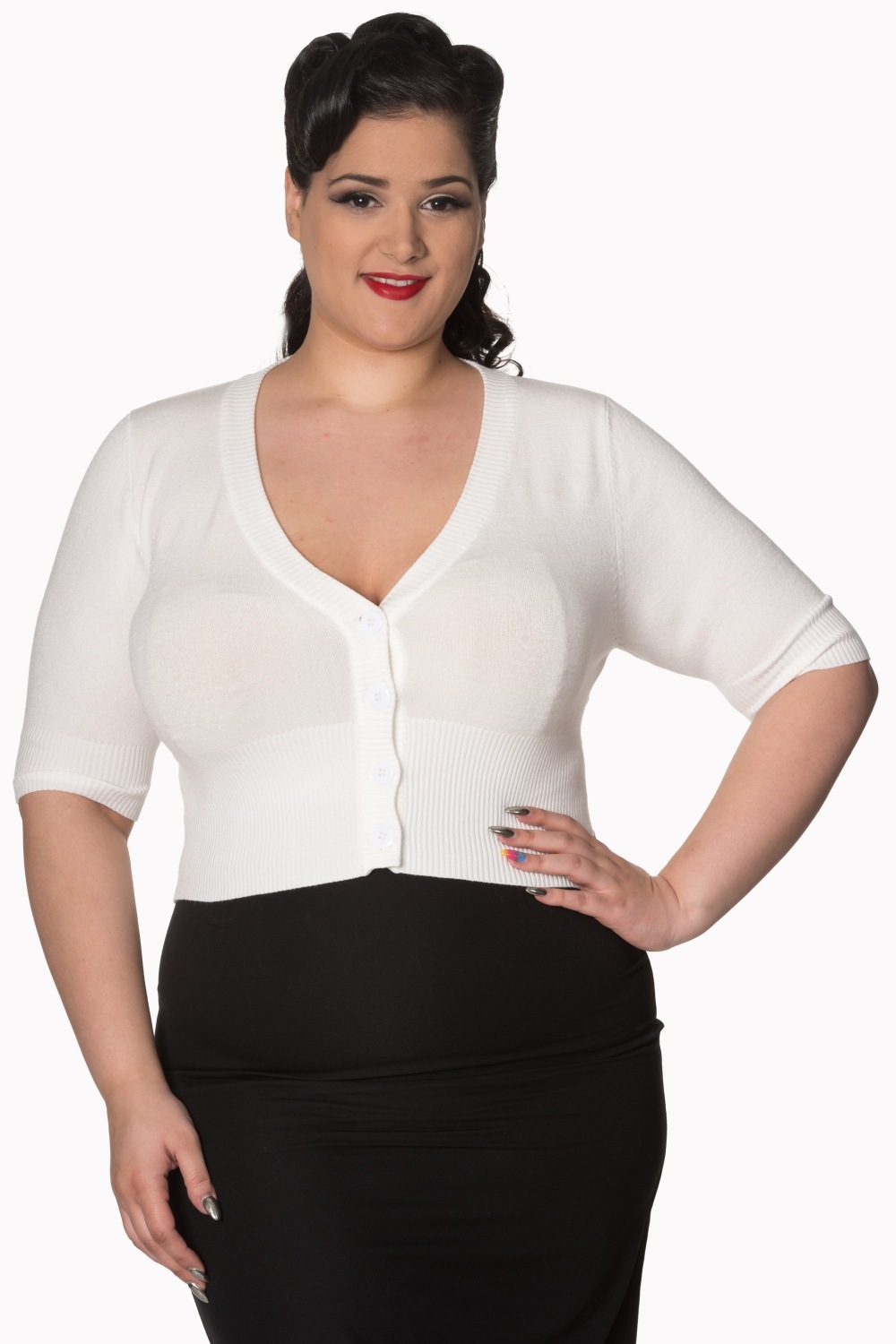 The Dolly is the basic cardigan you need to take you from formal day look to hitting the city with the girls. The Dolly Cardi is the perfect piece to build upon. Pair it with a elegeant silk scarf or a heavy choker to glam it up