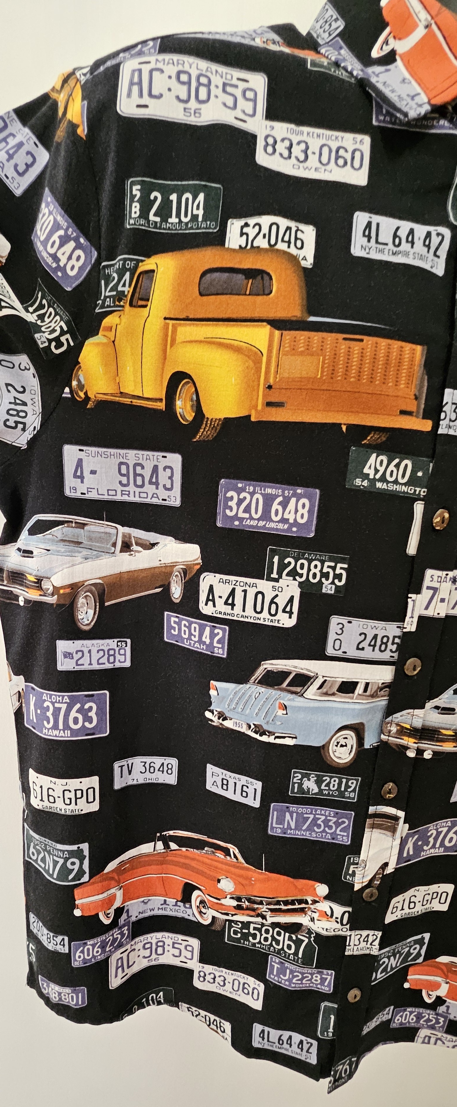 Wear it loud and proud in this funky take on a classic Hawaiian Shirt made by the talented Mo Cullen especially for Retro America! These rad shirts are manufactured in strictly limited quantities and can't be reproduced as the fabric is discontinued