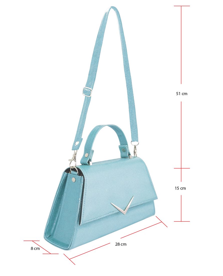 Measurements: 28cm base Width x 8cm base Depth x 15cm Height excl. handle and strap