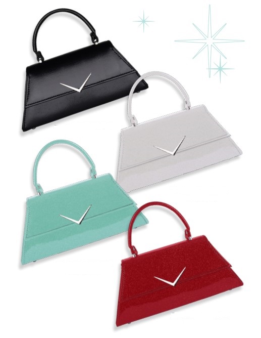 The Rumbler is a classic vintage styled handbag inspired by the bowling alley and classic cars complete with metal flake, leopard lining and chevron badge!