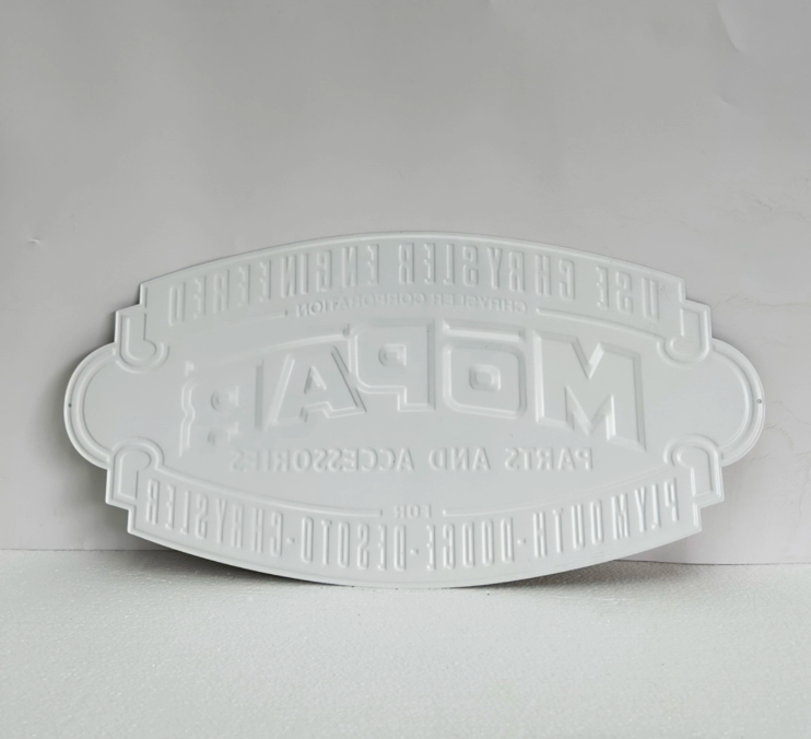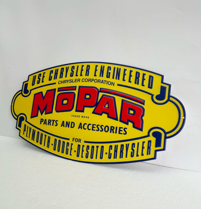 This classic die cut Mopar embossed metal sign is a must for any Mopar lovers shed