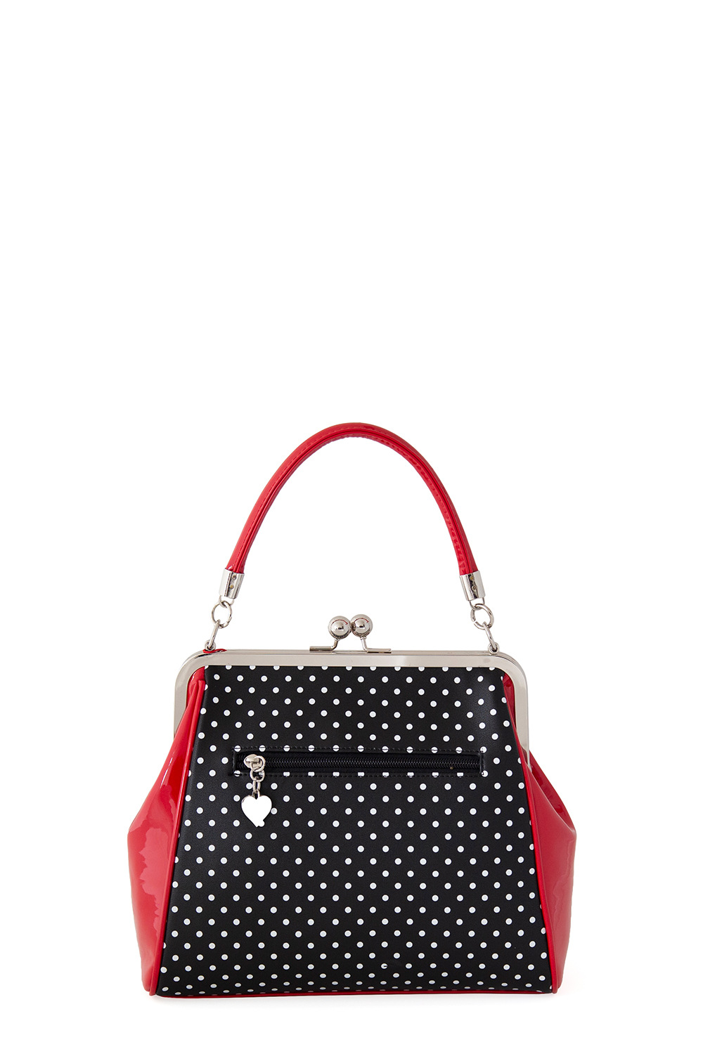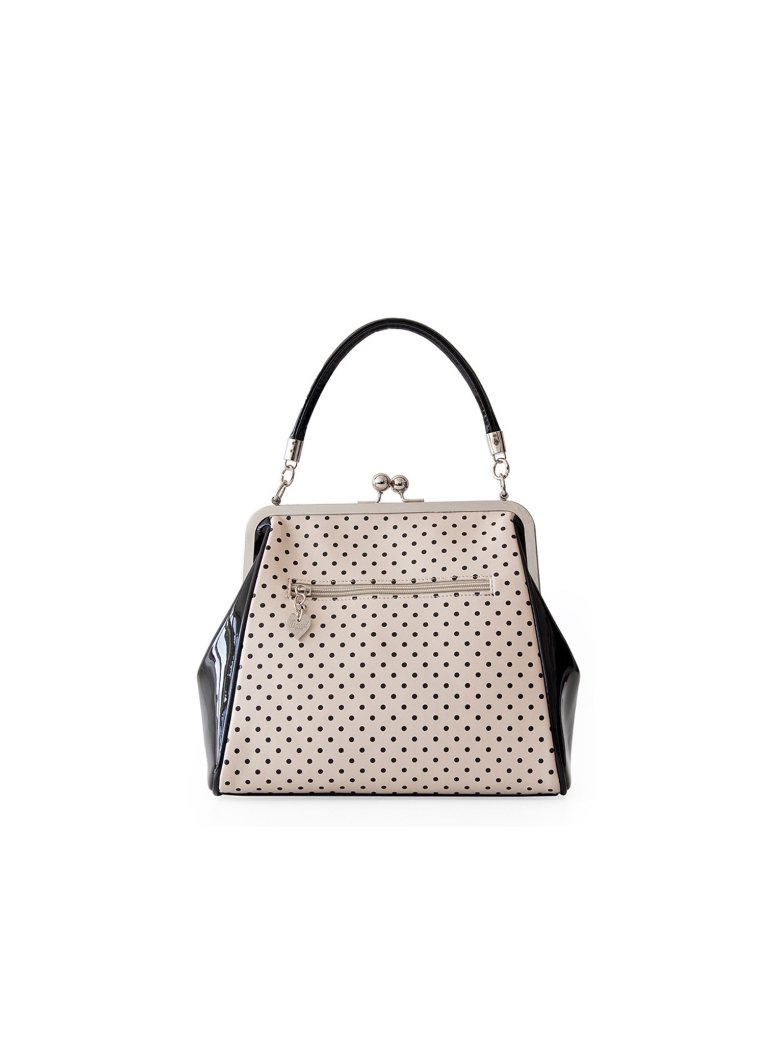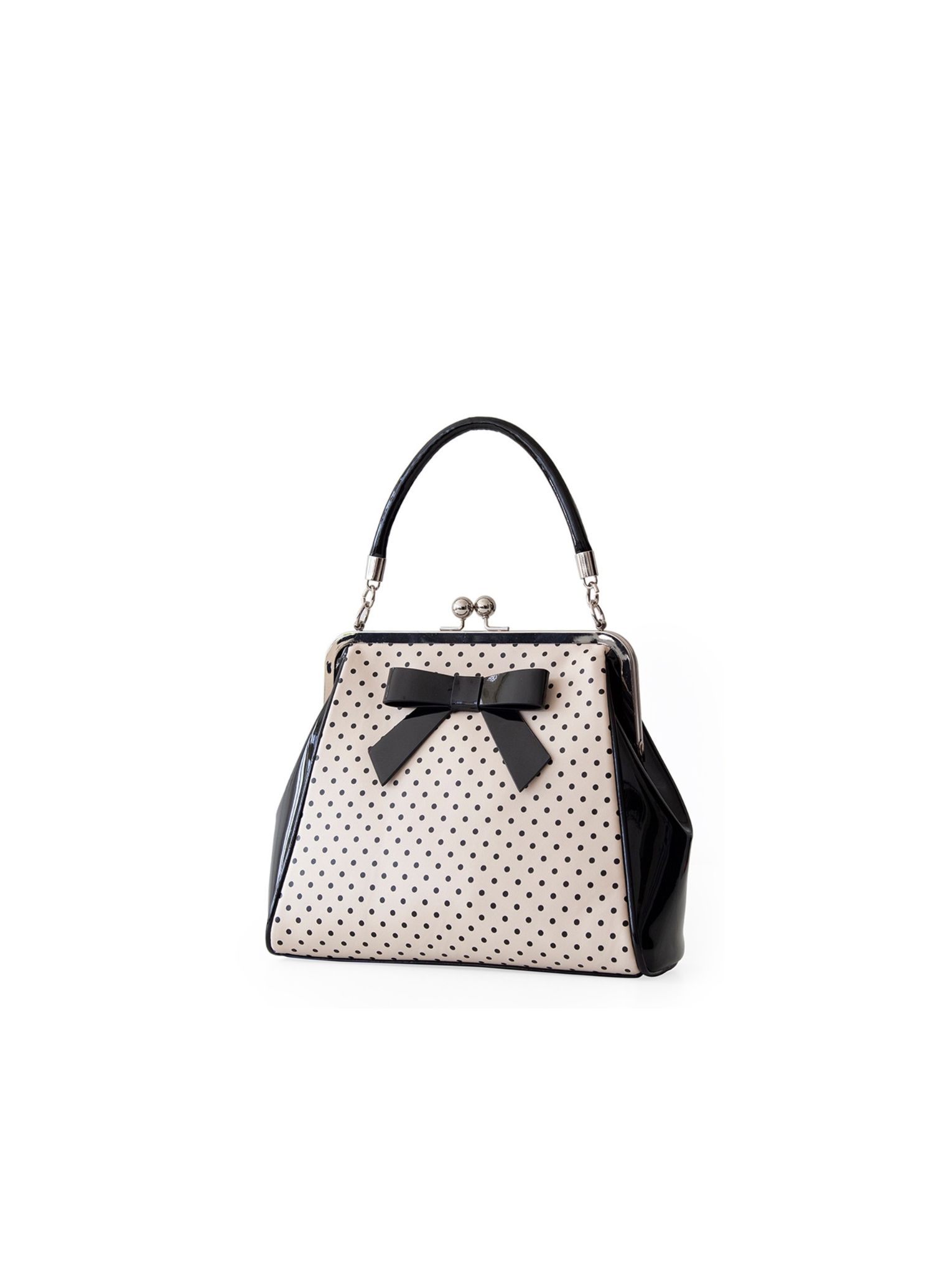 The Polka Starr handbag epitomises the vintage style with a rockabilly twist and classic kisslock close, finished with a demur bow and with both a handle and shoulder strap she's the perfect every day companion
