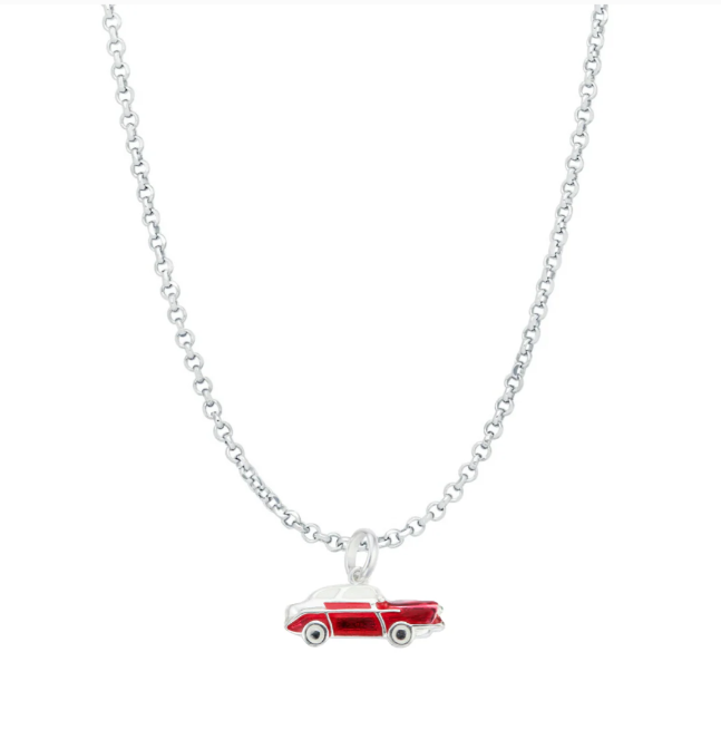 Classic cars never go out of style! This red charm is a replica of the cards of a bygone era. Beautifully crafted from sterling silver and hand finished with red enamel. Slide this charm onto an FV chain necklace or an FV charm bracelet.