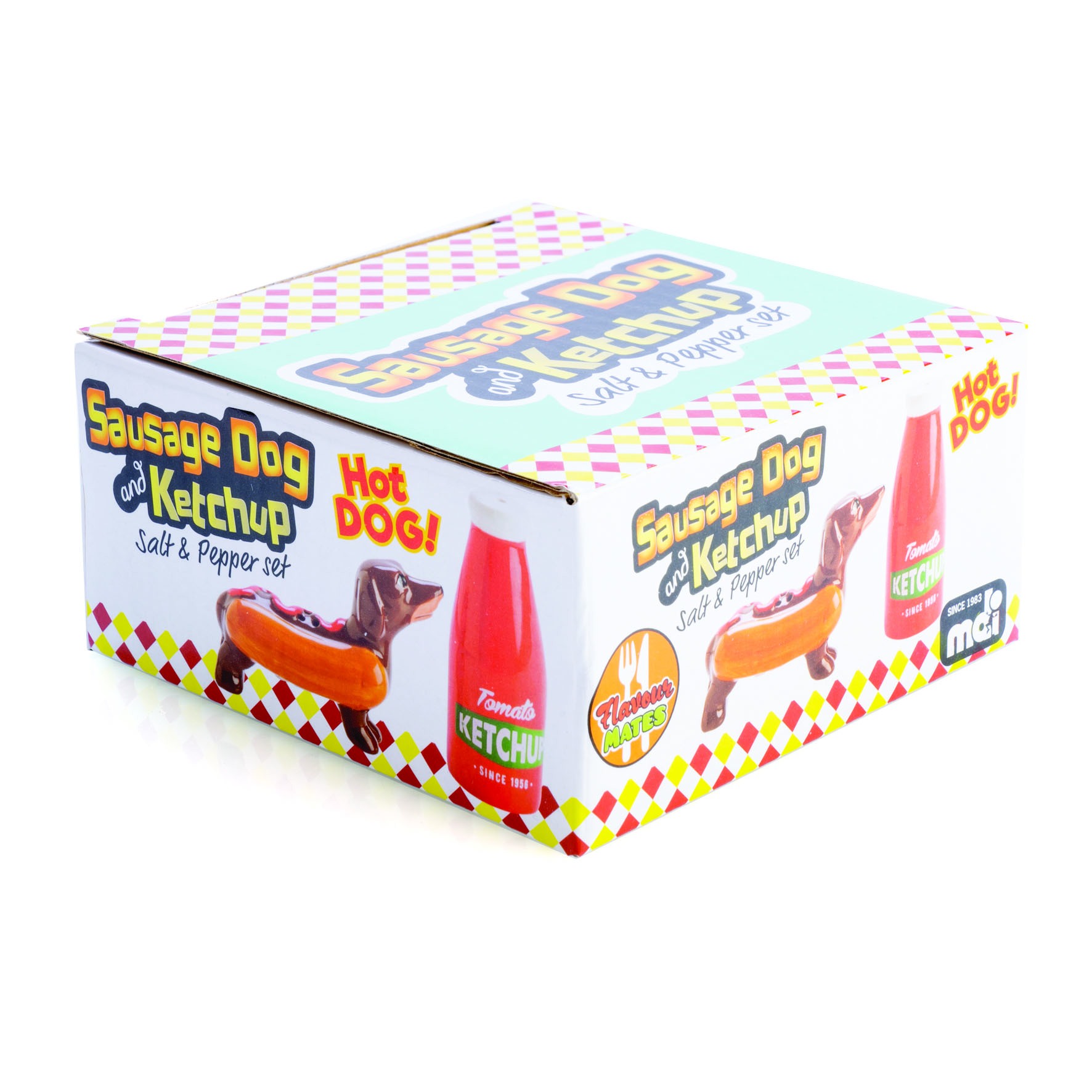 Hot diggity dog! Nothing’s as cute as this Sausage Dog and Ketchup Salt & Pepper Set! Feel soothed after a long day at work with a little hotdog dachshund keeping you company as you sit down for a bite to eat. These ceramic shakers are perfect for displaying on the dining table and are a great conversation starter when guests visit